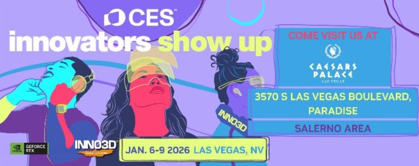 INNO3D, światowy lider w rozwiązaniach graficznych o wysokiej wydajności, potwierdza swój udział w targach CES 2026 (6–9 stycznia 2026, Las Vegas), gdzie zaprezentuje najnowsze innowacje w technologii chłodzenia kart graficznych serii GeForce RTX 50.