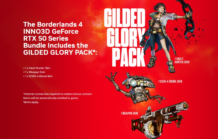 Razem z grą gracze otrzymują pakiet Gilded Glory Pack, w którego skład wchodzą skórki: Vault Hunter Skin, Weapon Skin oraz ECHO-4 Drone Skin. Dzięki temu przygodę w Borderlands 4 można rozpocząć od razu w wyjątkowym stylu.