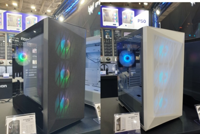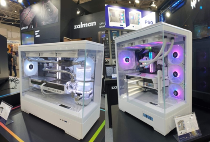 Firma Zalman zaprezentowała również obudowy P30 (Micro ATX) i P50 (ATX) wyróżniające się przednim i bocznym panelem ze szkła hartowanego. Taka konfiguracja ma zapewniać widoczność umieszczonych w środku komponentów, a także ułatwioną wymianę części i wygodniejsze czyszczenie wnętrza. W przypadku modelu P30 porty I/O (w tym USB Type-C) są umieszczone w lewym dolnym rogu. Wariant P50 ma natomiast w tym miejscu wyświetlacz LCD dostarczający podstawowych informacji, takich jak temperatura procesora czy GPU.